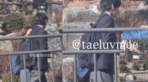 BTS V被目擊與神秘女子在首爾高中拍攝