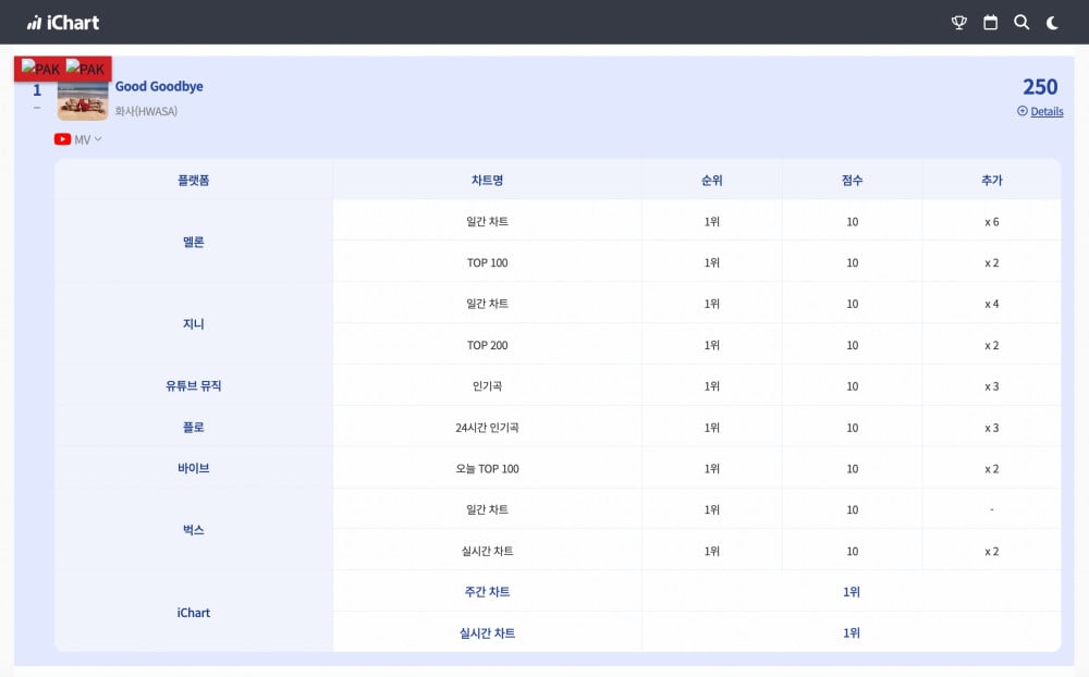 她憑藉最新Solo單曲《Good Goodbye》達成了此里程碑。這首歌自發行以來便獲得大眾強力支持,而在她與朴正民於第46屆青龍電影獎上備受討論的現場合作演出後,歌曲聲勢更進一步高漲——表演結束後,該曲在多個主要音樂平台榜單上強勢回升,並登上冠軍寶座。