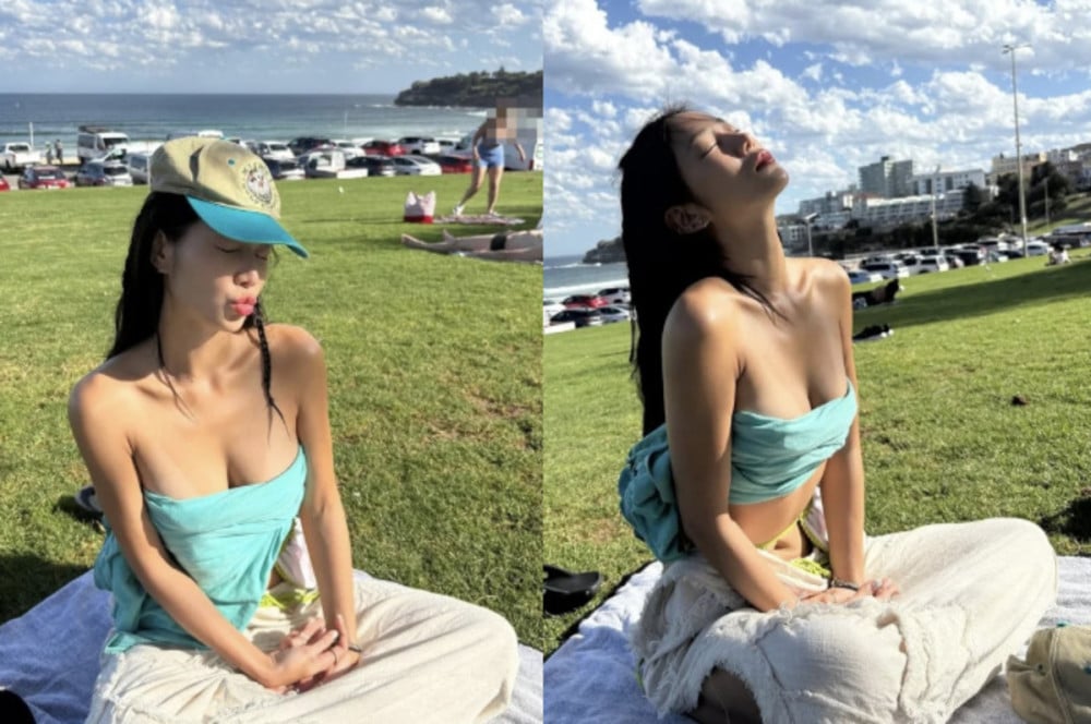 結束水上活動後,Soyou也被拍到在草坪上放鬆,以大膽姿態進行日光浴。她將比基尼上衣拉低,僅用毛巾遮蓋身體,展露纖瘦卻富有曲線的身形。純真中帶性感的模樣令粉絲驚艷不已。