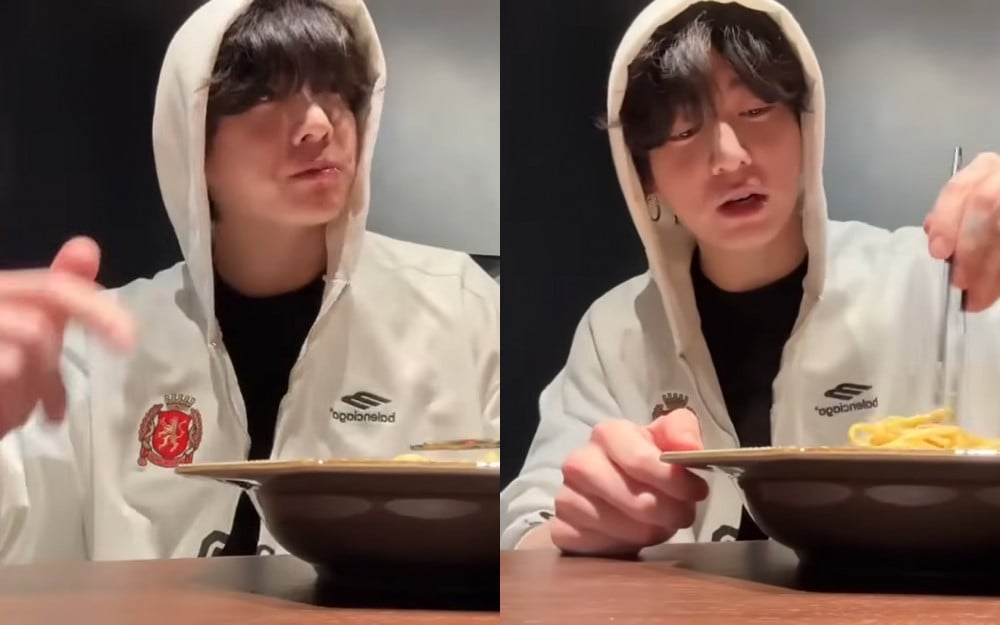 他接著問家務助理:「阿姨,有飯嗎?請給我半碗的一半就好」,然後將剩下的醬汁拌飯,結束了直播。