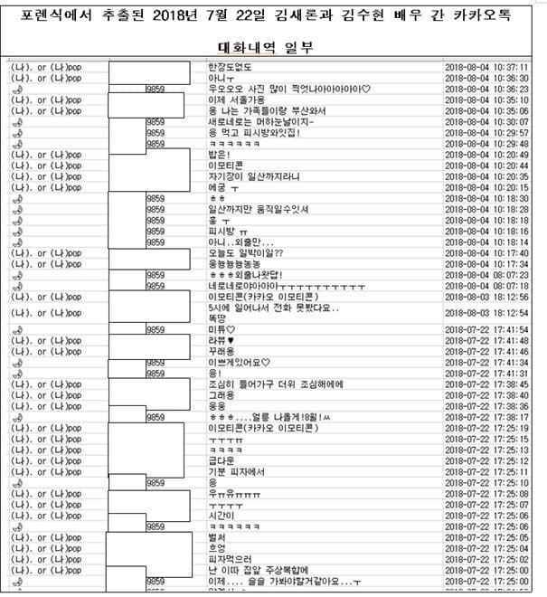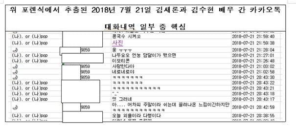 已故金賽綸家屬的法律代表隨後聲稱:「有進一步證據顯示金秀賢在金賽綸仍未成年時與她交往。以下是兩人於2018年7月21日及7月22日交換的KakaoTalk訊息。」律師提供的照片(下方)包含據稱是金賽綸與金秀賢之間的對話轉錄,其中有「賽綸 奈綸」及「我愛你」等字詞。