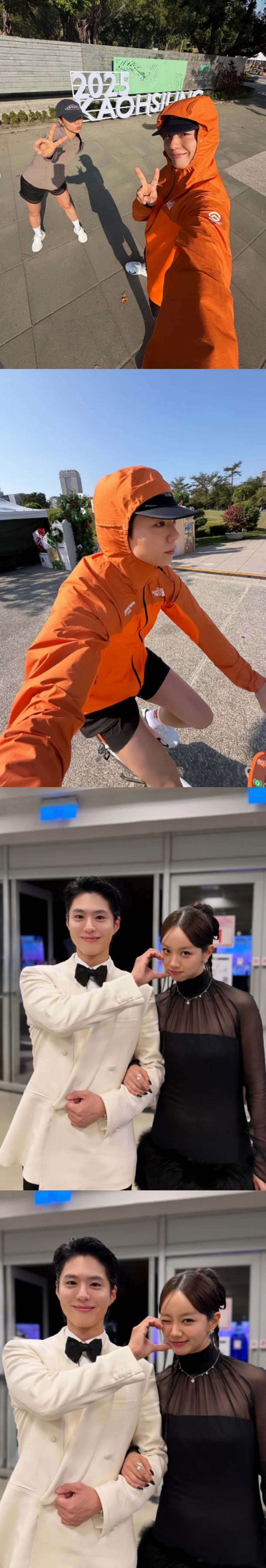 在頒獎典禮開始前,兩人被看到穿著輕便舒適的運動服,在台灣的街道上跑步以消除水腫。朴寶劍和惠利並肩而行,比出和平手勢並露出燦爛的笑容,展現出溫暖且自然的默契。