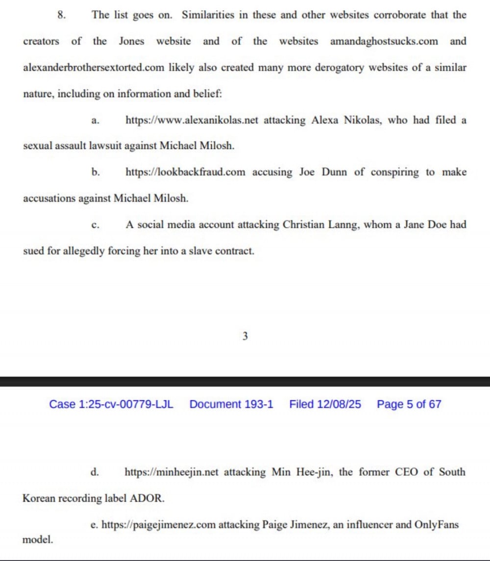 原告Stephanie Jones尋求將TAG PR行政總裁Melissa Nathan追加為被告,指控其公司創建誹謗網站及虛假個人資料以損害他人聲譽,其中包括在2024年閔熙珍因ADOR及NewJeans與HYBE發生糾紛期間,針對她的一項行動。