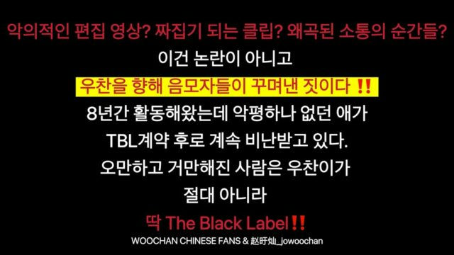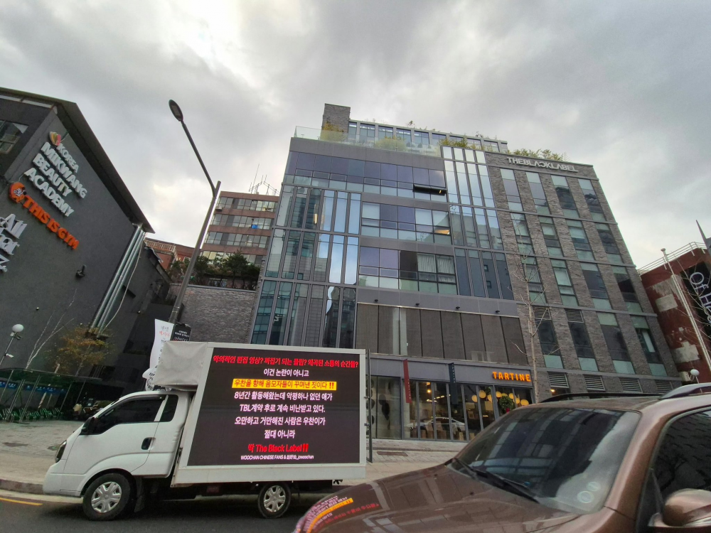 12月10日,中國粉絲在THE BLACK LABEL總部組織了卡車抗議,表示他們抗議的是「Woochan所遭受的不尊重對待」。粉絲聲稱有關Woochan的惡意虛假資訊被故意散播,並且公司也一直在「模糊Woochan作為饒舌歌手的身份」。