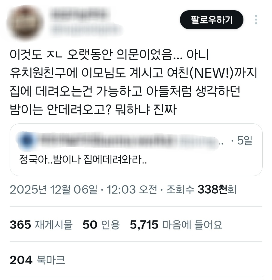 該貼文也提到,柾國在 2023 年 12 月曾對情況作出回應,當時有粉絲問他是否棄養了 Bam。