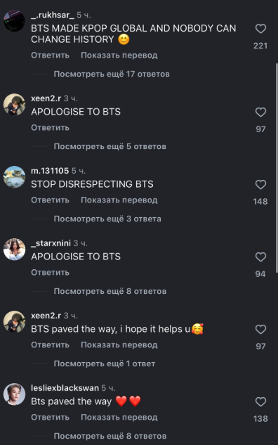 然而,Bruno對「APT」全球影響力的解釋,最終引發了一些K-pop粉絲,特別是BTS粉絲的憤怒。許多人對Bruno在談論取得全球成功的K-pop歌曲時沒有提及BTS感到不滿。BTS粉絲也稱Bruno的言論「不尊重」,說他「抹殺了BTS對產業的影響力」,並且「表現得像他發明了K-pop一樣」。