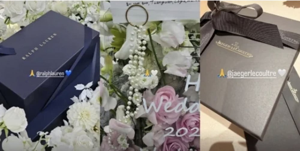 12月19日,金宇彬透過個人社交媒體帳號分享了在婚禮前收到的眾多禮物照片。這位演員上傳了品牌和粉絲送來的禮物圖片,並配上雙手合十的表情符號表達謝意。這些禮物被放置在優雅的白色花盒中,盒上寫有「新婚快樂」的訊息,捕捉了婚禮前夕的興奮與期待。