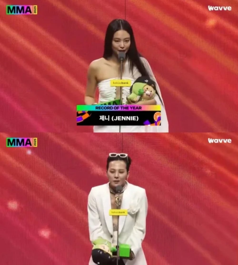 曾身陷戀愛傳聞的G-Dragon與Jennie,在2025 Melon Music Awards(MMA)上雙雙奪得最高榮譽,並肩以「大賞得主」身份亮相,引發高度關注。