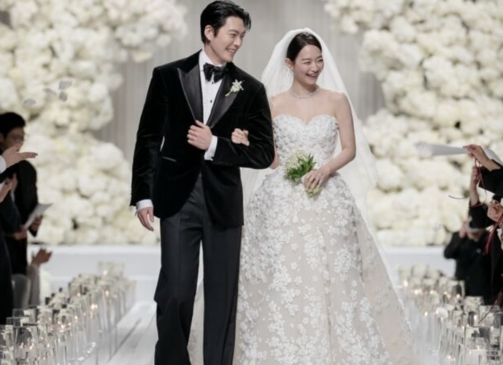 在先前公開的婚禮畫報中,申敏兒身穿的是設計師Danielle Frankel的禮服。該造型以緊身胸衣式上衣搭配裙子,營造出極簡而俐落的輪廓,花卉細節則增添了優雅氣息。據悉,上衣與裙子的總價約為10,500美元。