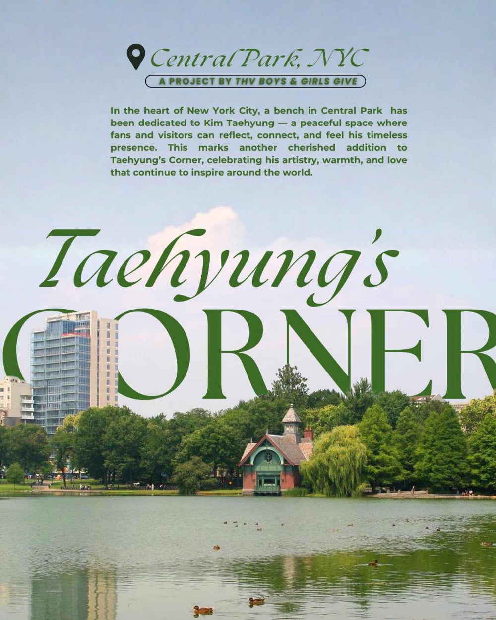 V的美國粉絲解釋了此項目的意義:「在紐約的心臟地帶,中央公園現在擁有一張獻給金泰亨的長椅。這是一個寧靜的空間,讓粉絲和遊客都能感受到他永恆的存在,彼此連結,並回味共同的回憶。」