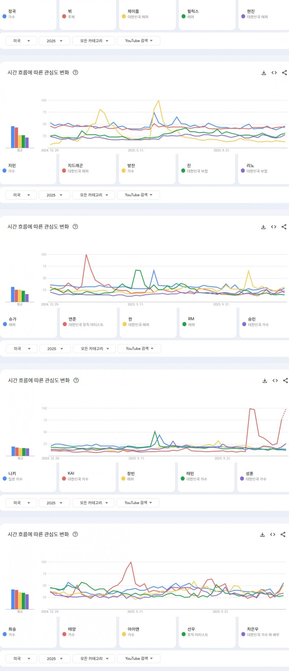 2025年YouTube最多搜尋的個人男K-Pop偶像: