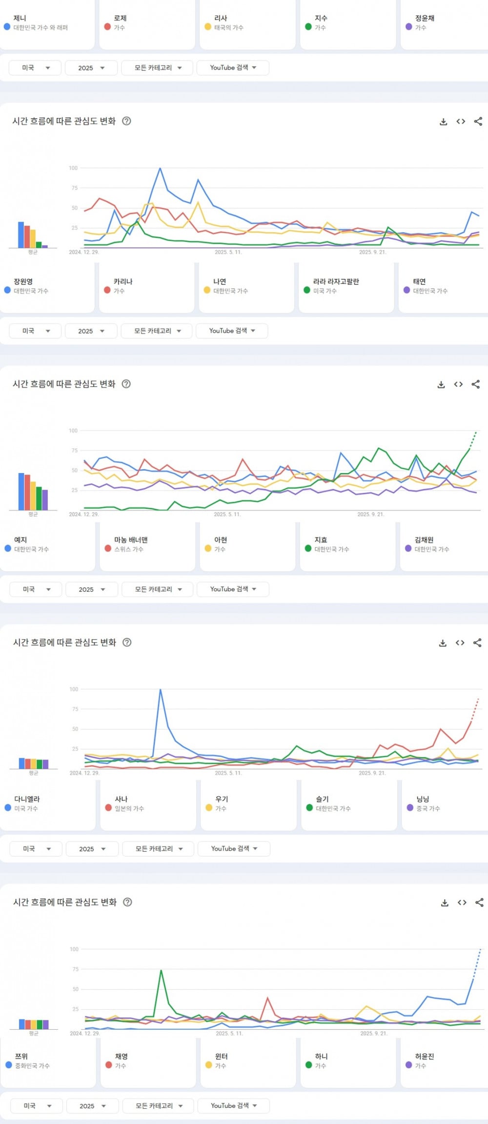 2025年YouTube最多搜尋的個人女K-Pop偶像: