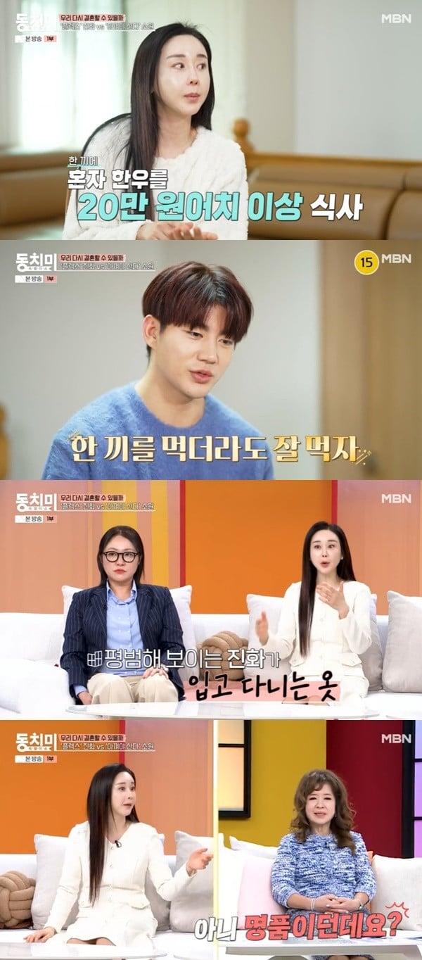 當李賢伊問道:「他賺得好嗎?」 咸素媛回答:「以前,以他的年齡來說賺得不錯。疫情之後,工廠的狀況就不太好。他20歲時服裝生意做得很好,但大約從2022年開始,工廠就不太景氣了。」 主持人金勇萬同情地評論道:「他可能是在生意好的時候習慣了買名牌。你們就是為這個吵架嗎?」