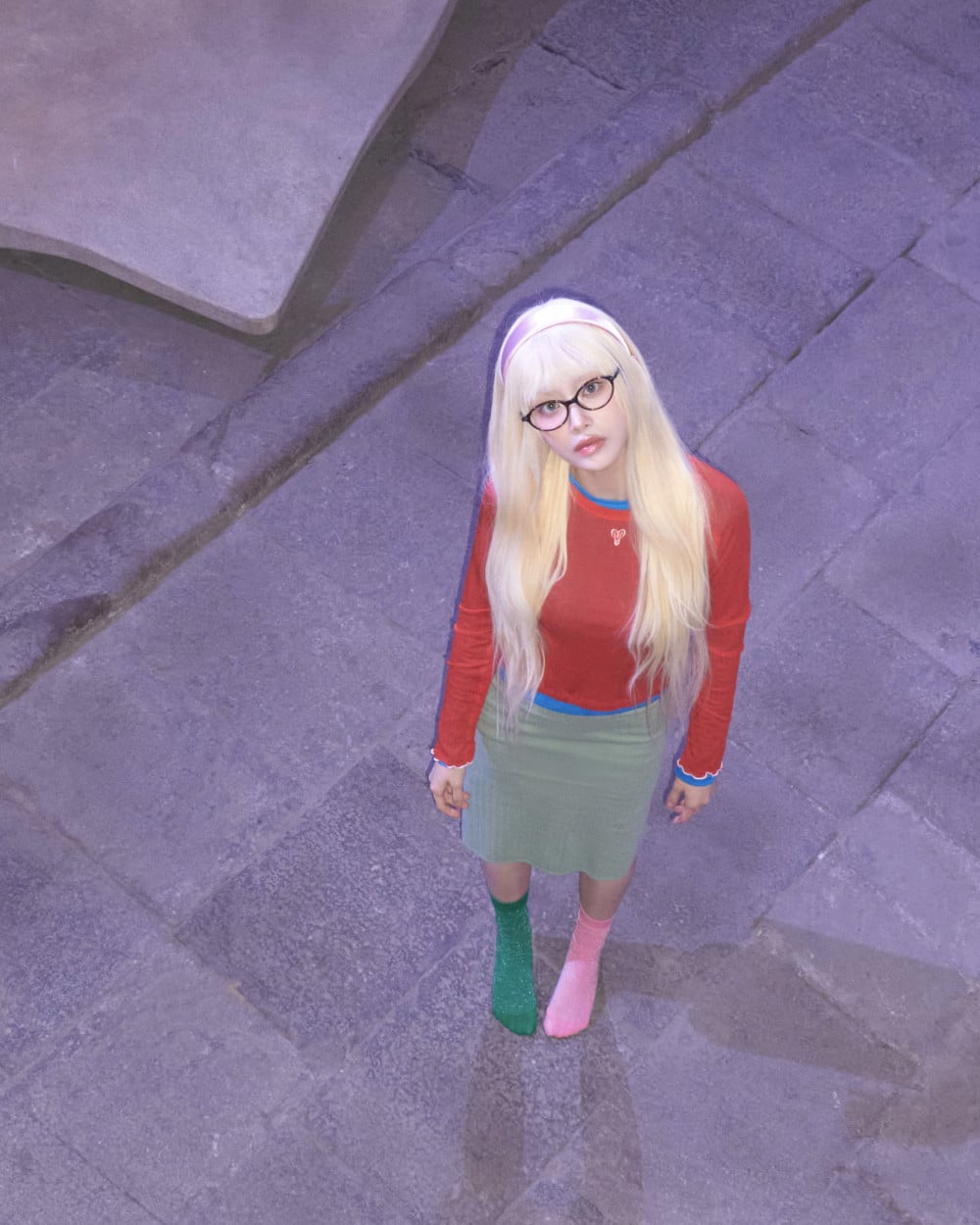 韓國時間1月2日凌晨,這位歌手公開了照片,以白金金髮造型展現她古靈精怪的魅力。照片中,Chuu 穿著不對稱的服裝,包括不成對的襪子。她俏皮的姿勢更增添了預告照的獨特氛圍。