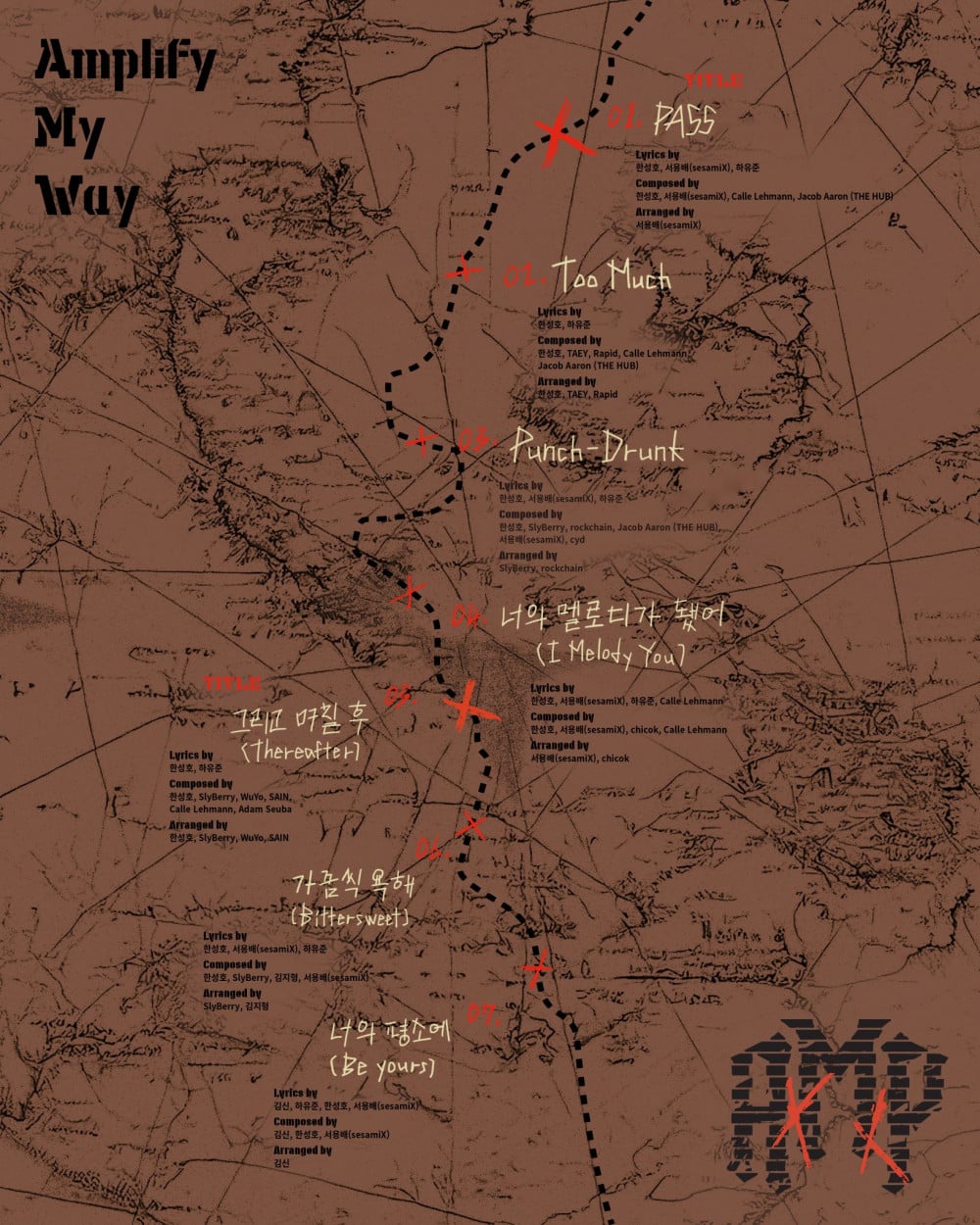 韓國時間1月7日,AxMxP 公開了迷你專輯《Amplify My Way》的曲目列表海報。