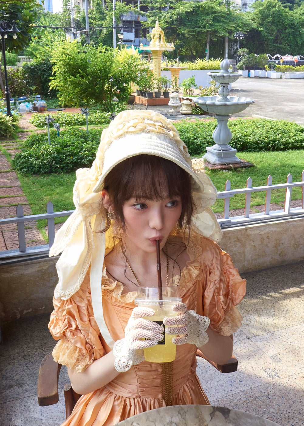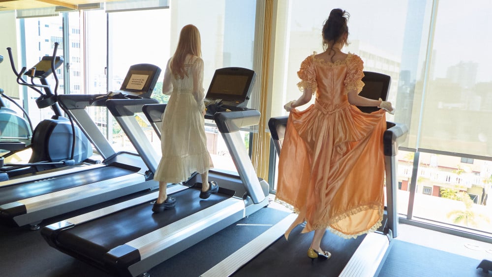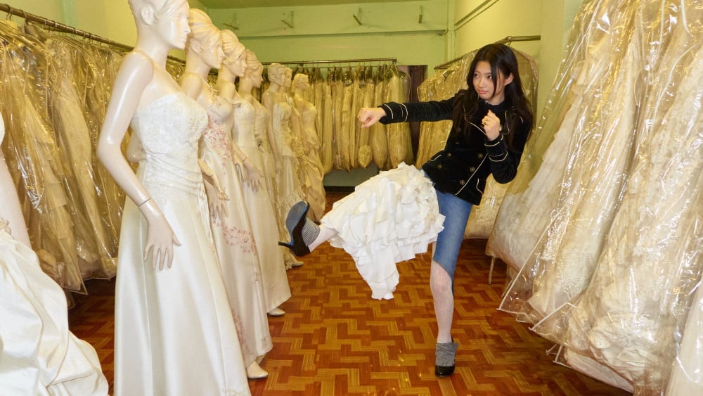 KiiiKiii 的成員們身穿荷葉邊蕾絲裙和絲質手套,以充滿風格的姿態肆意奔跑。
