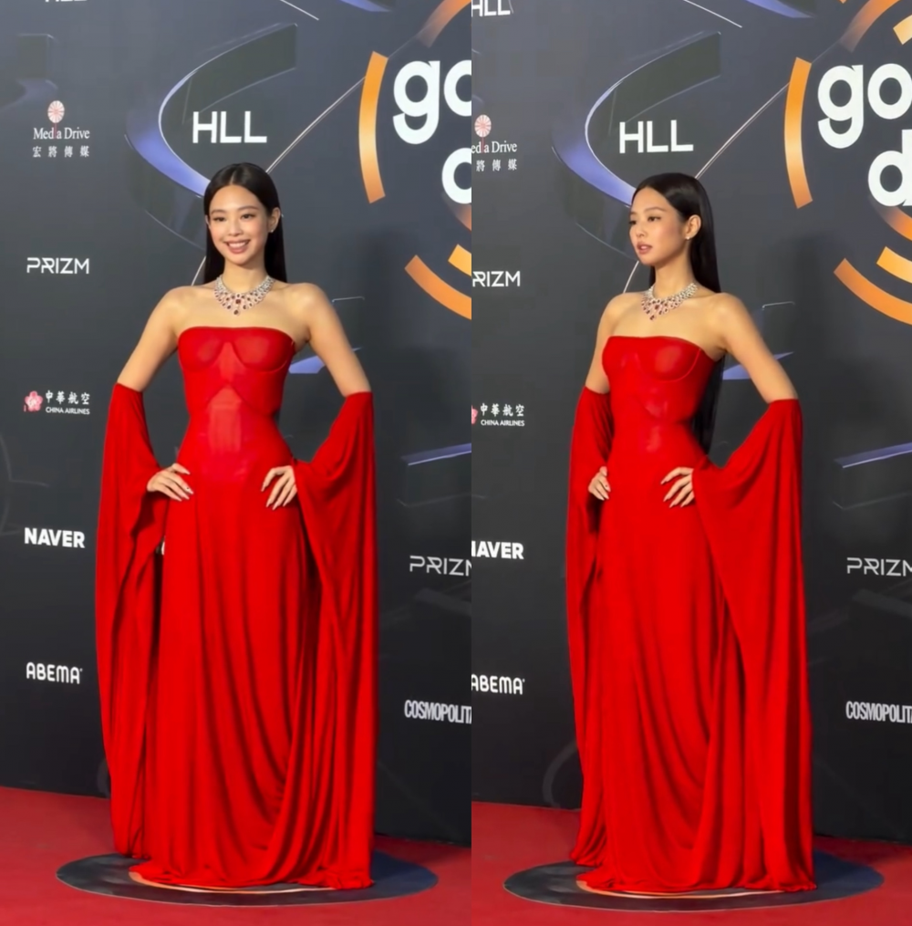 然而,令Jennie今日成為熱門話題的並非其榮譽獎項,而是她的時尚造型。Jennie在《Golden Disc Awards》紅毯上以一襲搶眼的紅色禮服亮相,瞬間吸引全場目光。網民對Jennie的紅裝美貌驚嘆不已,紛紛表示她穿上這大膽色調猶如真正的皇室貴族。