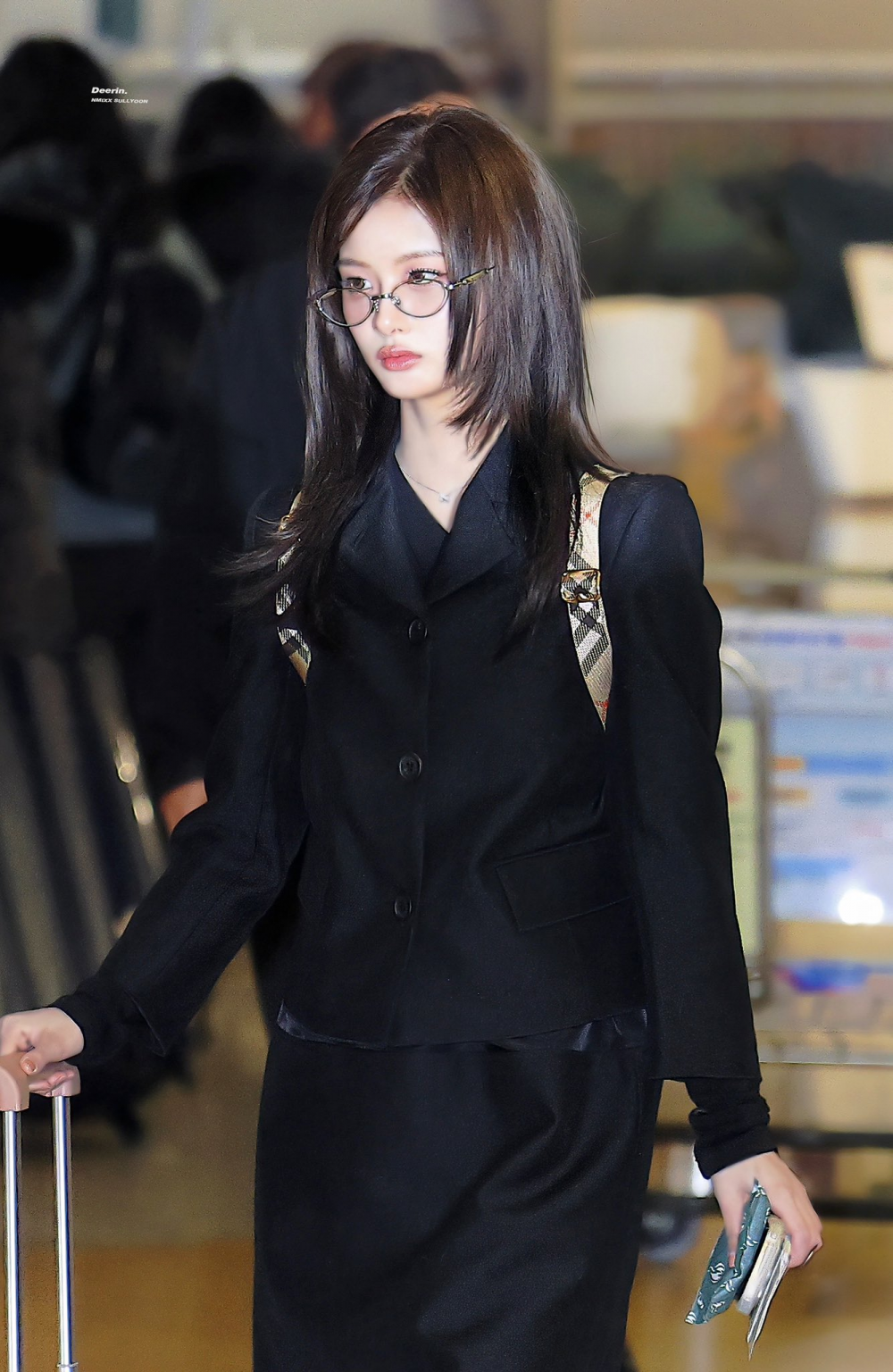 1月10日,Sullyoon 與 NMIXX 其他成員一同現身仁川機場。這位以耀眼美貌著稱的偶像,憑藉新造型迅速吸引了觀眾的目光。她戴著時尚眼鏡,身穿西裝外套,腳踏黑色長靴,髮型和妝容突顯了她的天生麗質。整體造型營造出優雅迷人的氛圍。