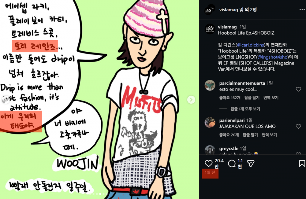 「Woojin還是個新人,卻似乎充滿了虛假的傲慢。看來他一定是從他的老闆Jay Park那裡學到了那種東西」