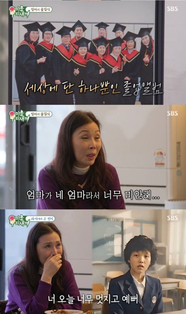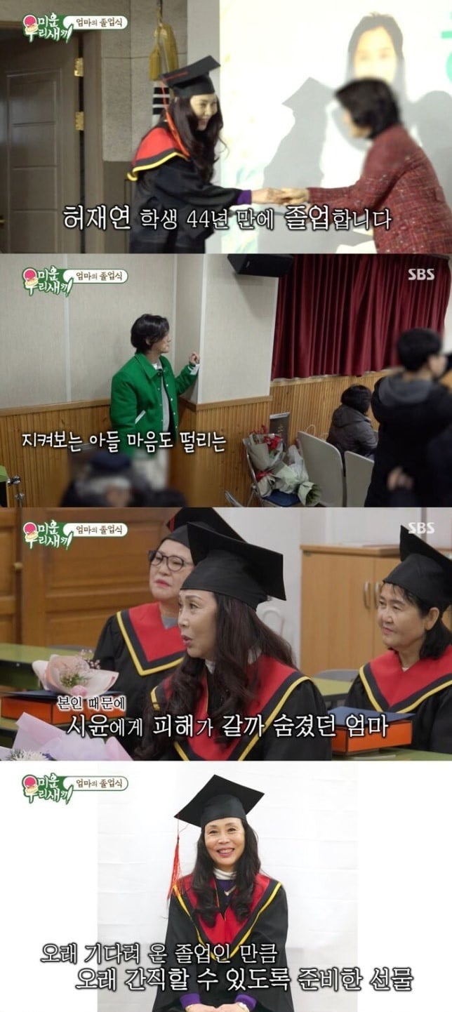 同學們透露,是在節目播出後才知道尹施允是她的兒子。對此,尹施允的母親表示:「因為兒子是藝人,我很擔心,所以什麼都沒說。我不想讓人知道我連中學都沒畢業。我擔心人們會因為我而用什麼眼光看待我兒子,所以一直隱瞞著。」