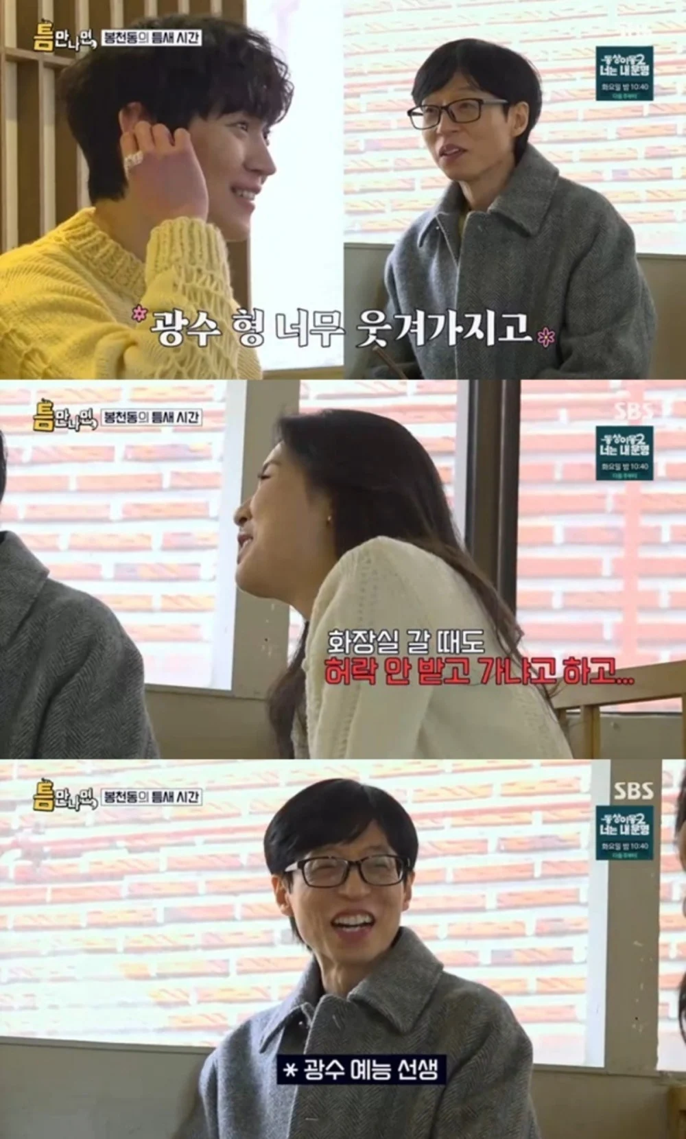 在1月27日播出的SBS綜藝節目《只要有空》中,「空檔朋友」李先彬和金永大在首爾冠岳區奉天洞度過了探索日常時光的時光。
