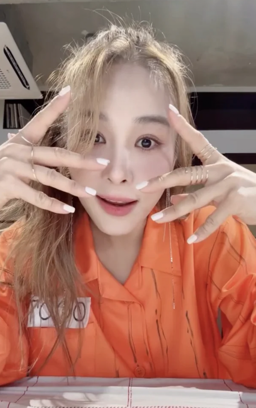 在影片中,她身穿橙色囚犯風格服裝,帶著淘氣的表情說出俏皮台詞:「一名囚犯。我的罪行?就是奧玧宣。」在接下來的片段中,她轉換語氣,將戴著華麗珠寶的手靠近臉龐,並標註了贊助品牌,展現了她所謂的「宣傳精靈」一面。