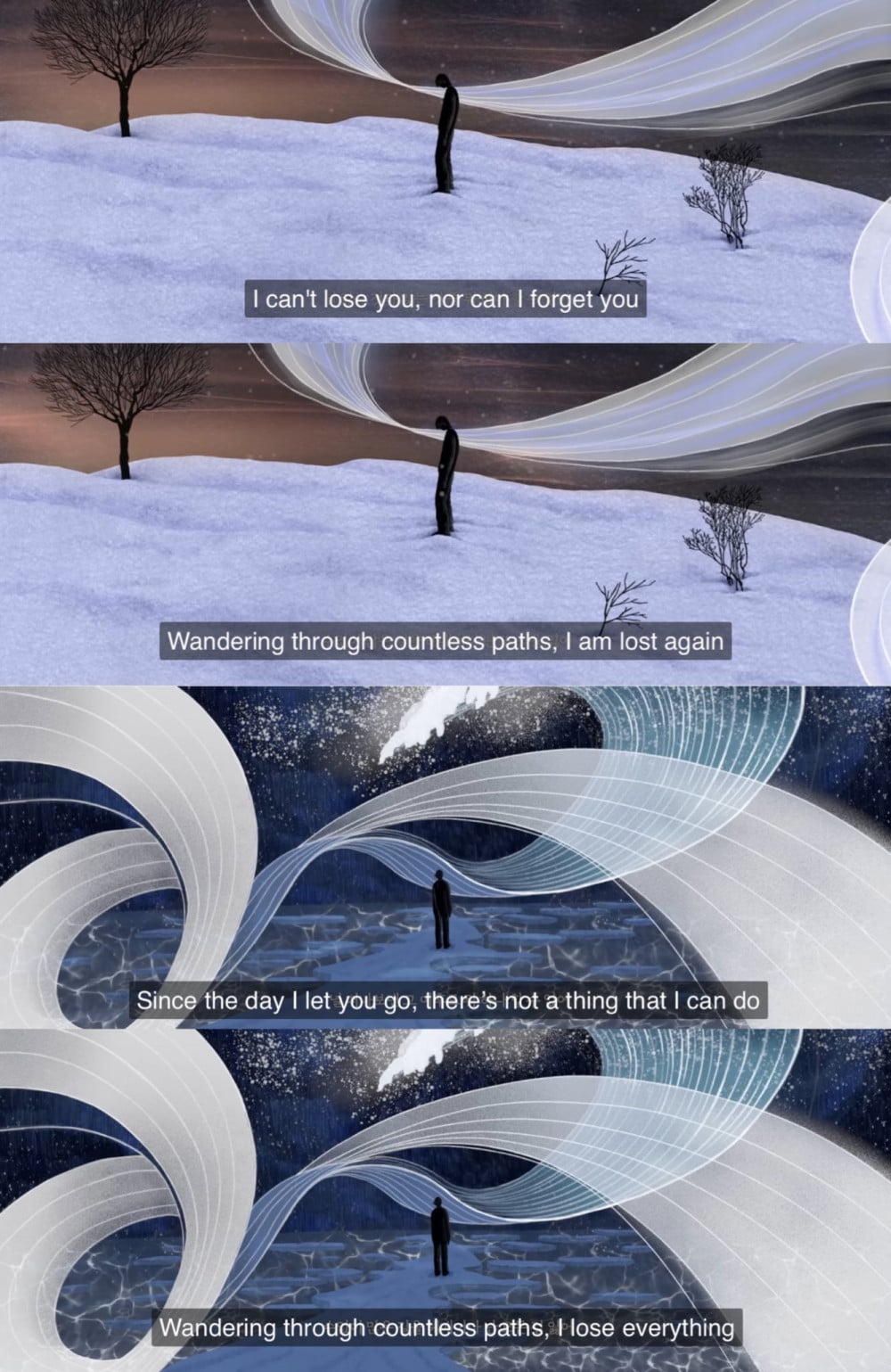 這首歌由 Stray Kids 的彰彬 (3RACHA) 單獨作詞,他並與 Millionboy 及 Nickko Young 共同參與了作曲。簡約而富有氛圍感的伴奏將 昇玟 的歌聲置於最前線,進一步放大了歌曲的反思與憂鬱情緒。