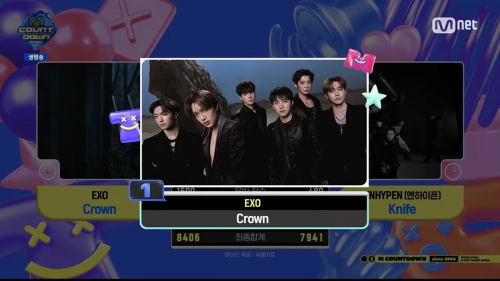 在1月29日播出的Mnet《M! Countdown》中,EXO的〈Crown〉與ENHYPEN的〈Knife〉成為一位候補。分數結算後,EXO以總分8,406分勝出。