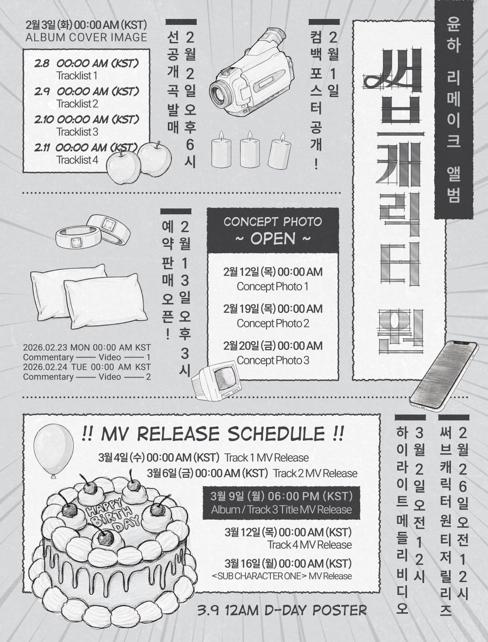 最後,在三月,精華串燒預告將於3月2日公開。接著,Younha將於3月4日發布首支音樂錄影帶預告,第二支則於3月6日釋出。最終,主打歌的完整音樂錄影帶將於3月9日正式上線。請記得在行事曆上標註日期,以便追蹤所有即將釋出的預告內容。