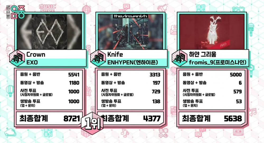 憑藉這座獎盃,EXO為其第八張正規專輯的主打歌《Crown》贏得了第四個音樂節目冠軍,這距離他們上一張正規專輯已時隔2年7個月。在此次勝利之前,他們亦在《Show Champion》、《M! Countdown》和《Music Bank》中獲得第一名,橫掃各大主要週播音樂節目。