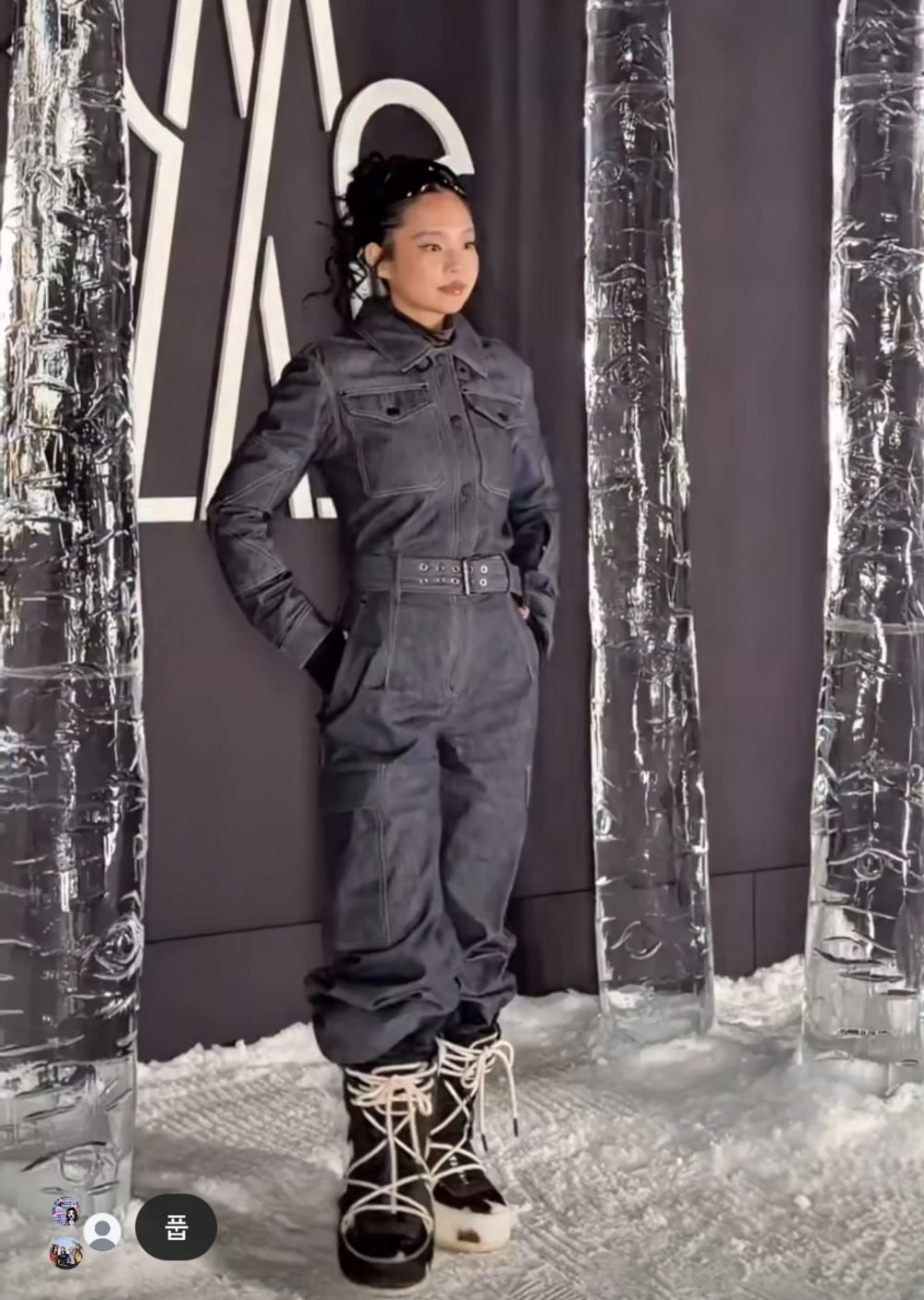 在1月31日於美國阿斯彭舉行的 Moncler Grenoble 時裝秀上,Jennie 以這身大膽造型親身亮相,令網民感到驚訝。
