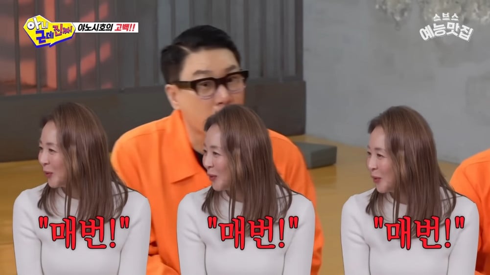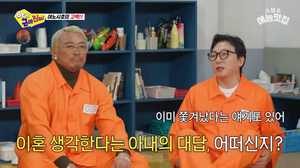 節目中,李尚敏首先談及秋成勳的妻子,說道:「我前幾天(在另一個節目中)見到了矢野志保,有機會問她是否想過離婚。她回答說:『一直想,一直想,一直想。』你對妻子的回答有什麼看法?」秋成勳回答說:「如果她一直、一直想著離婚,那我肯定也一樣。」卓在勳插話道:「別裝堅強了,」引得錄影棚內眾人發笑。
