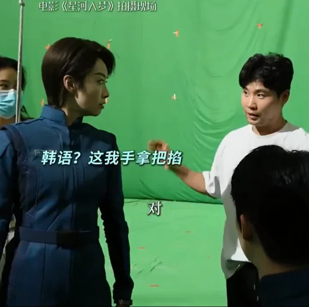 最引人注目的是拍攝中的一個瞬間:一名韓國工作人員用韓語講解鋼絲移動的動作和時機。Victoria毫不猶豫地立即理解了指示,並準確地用中文向對手演員轉達了要點。無需翻譯在場,拍攝順利進行,現場工作人員還開玩笑說她「一人身兼兩職」。