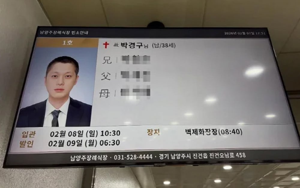 故人的靈堂設於京畿道南楊州市的殯儀館,出殯儀式已於9日莊嚴舉行。