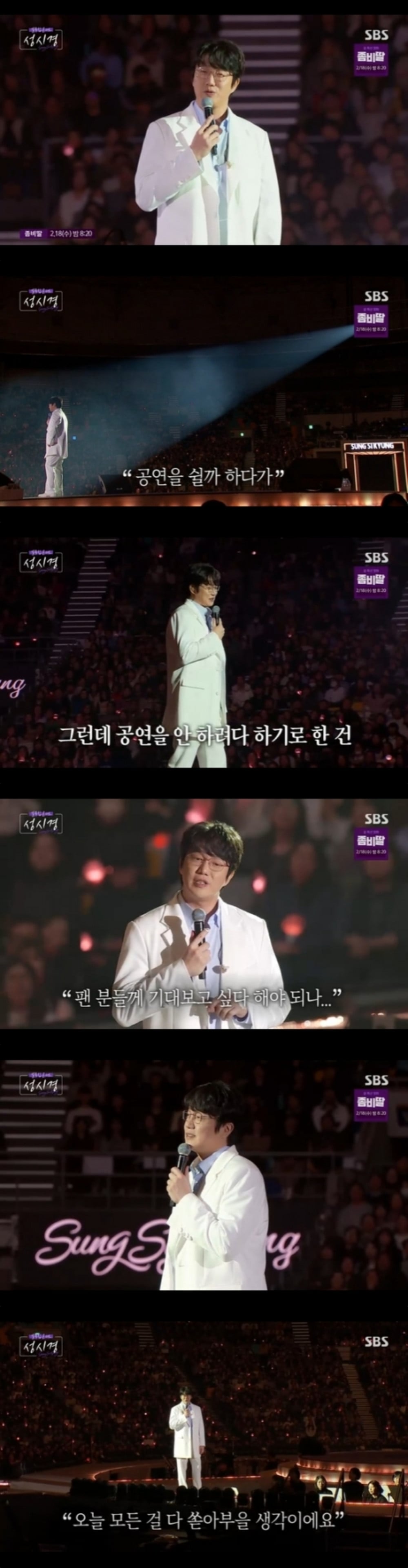 2月14日,SBS播出了去年12月25日至28日舉行的演唱會《Concert Sung Si Kyung》電視版——春節特輯《成始璄演唱會特輯》。站在舞台上的成始璄坦率地分享道:「這其實是我鼓起很大勇氣才決定進行的演出。我真的想休息。我覺得我需要休息。但我感覺如果休息了,可能會被黑暗的能量淹沒。我沒有信心,但還是堅持前進。我現在依然緊張和害怕,也準備了很多。」