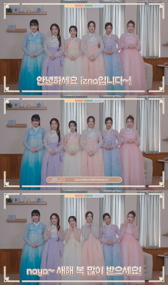 2月17日(韓國時間),組合(Mai、方濟民、Koko、柳莎朗、崔正恩、鄭世比)透過官方頻道發布節日問候影片。影片中,izna成員身穿同色系淡雅韓服,自然展現節日的溫馨喜慶氛圍,並分享新年願望。