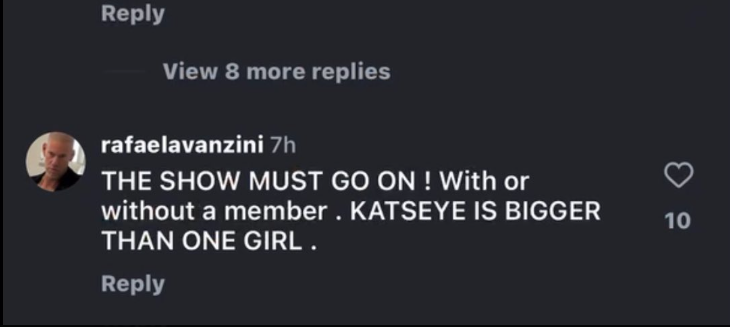 粉絲目前正批評Daniela父親的言論,許多人要求他刪除留言。粉絲們也開始使用標籤「#StandWithManon」和「KATSEYE is Six」來表達對Manon的支持。