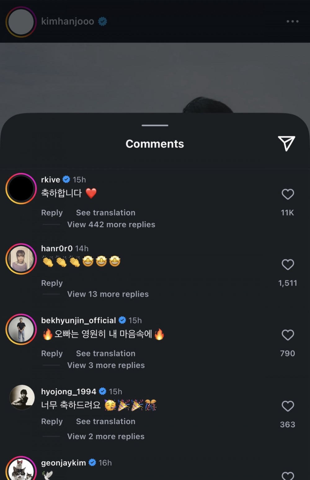 韓國時間 2 月 24 日,金韓柱透過個人社交媒體親自公佈消息,並上傳了多張照片。