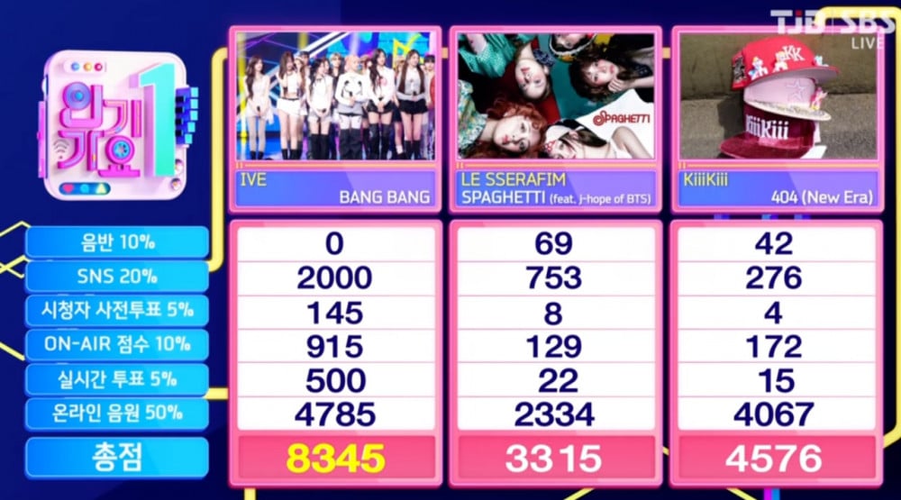 IVE 憑藉熱門歌曲 《BANG BANG》 在SBS的《人氣歌謠》中奪得冠軍,延續了他們的連勝紀錄,並獲得了第四個音樂節目冠軍。