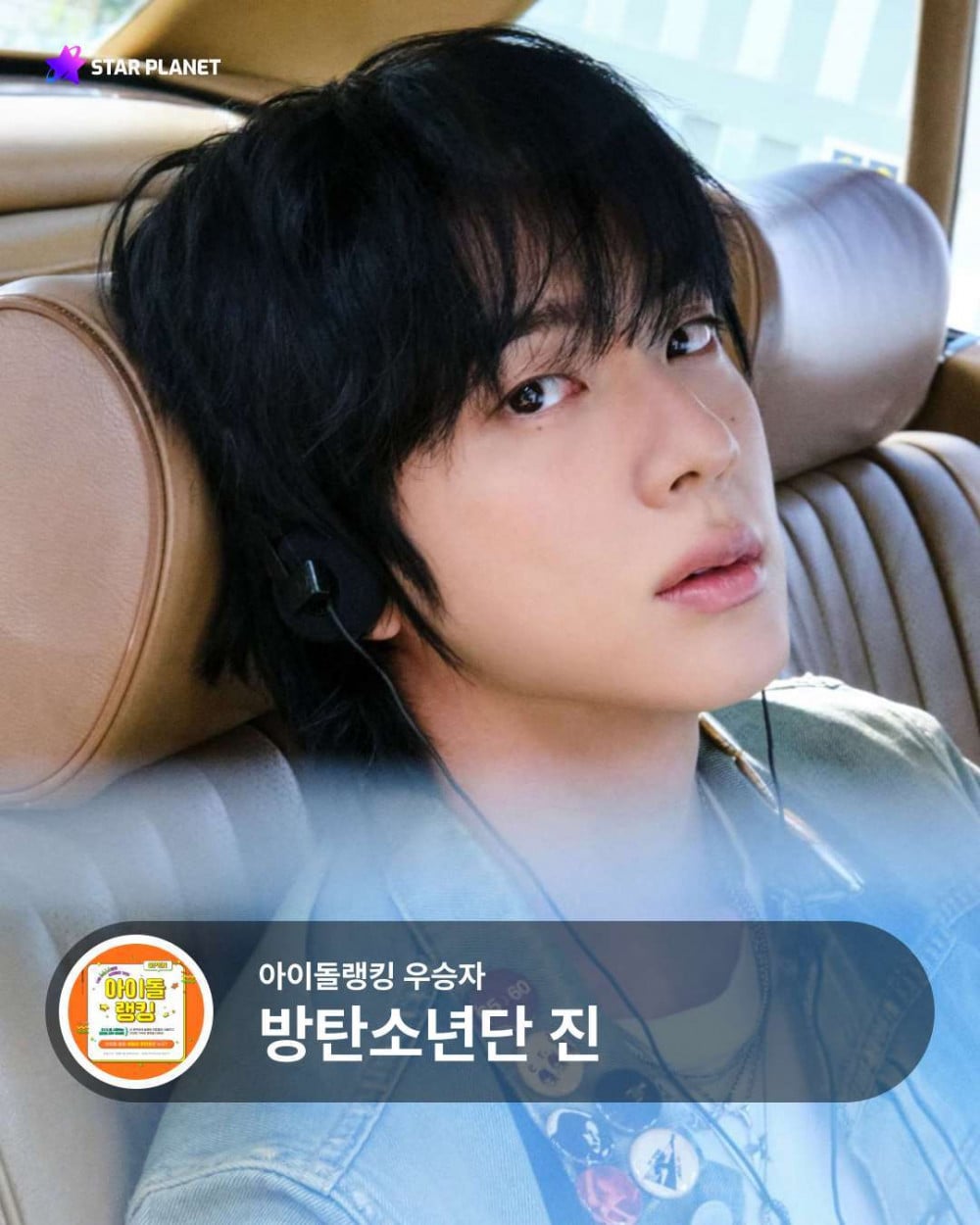 Jin在全球粉絲投票平台Star Planet進行的二月偶像排名中位列第一,共獲得155,369票。繼一月奪冠後,他已連續兩個月保持榜首位置,再次證明其不可動搖的存在感與人氣。