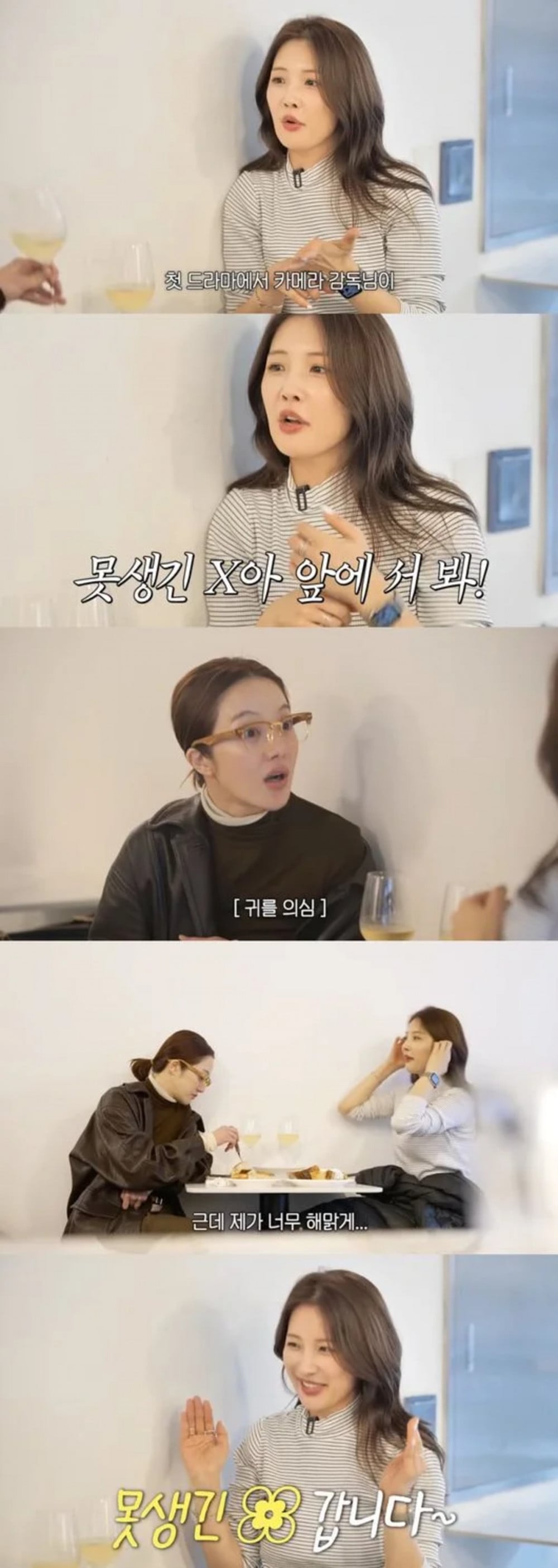 在影片中,完成一段鍛鍊後,南智賢向黃寶拉坦承了自己拍攝第一部戲劇時經歷的事件。她回憶道:「我記得當時我還在以4Minute身份活動,第一次去戲劇拍攝現場。攝影導演突然說:『喂,你這個醜八怪,過來。』」