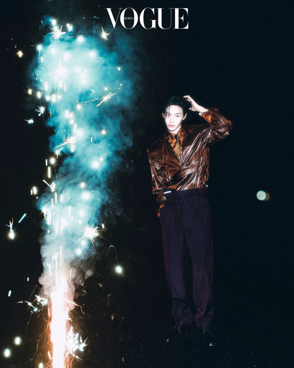 Saint Laurent 2026 夏季系列從一個以慾望定義風格、以美麗抵禦空虛的時代汲取靈感,探索了展露與隱藏之間危險的平衡,將細膩的性感與雕塑般的優雅融為一體。在這光影交錯之中,元彬佇立其間,遊走於晝夜之際。他身披彷彿能捕捉光線的亮澤面料,以引人注目的氣勢登上了《Vogue》的數碼封面。