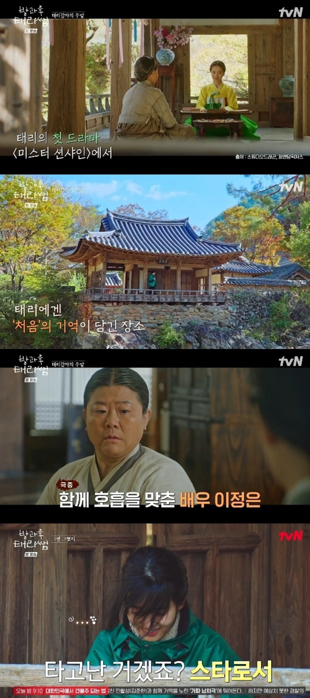 在3月15日播出的tvN節目《放學後的心動-泰梨老師》中,她與演員崔顯旭共度週末,並驚喜地發現他們所在之處,正是她劇中著名角色首次登場的地點。她分享道,在劇中飾演她忠實幫手的演員李姃垠,當時給予了她極大的支持。由於這是她首次拍攝電視劇,金泰梨表示自己當時懂得不多,非常依賴這位前輩演員的指導。當崔顯旭稱讚她天賦異稟,是天生明星時,她謙虛地開玩笑說,真正的明星才不會這麼緊張。