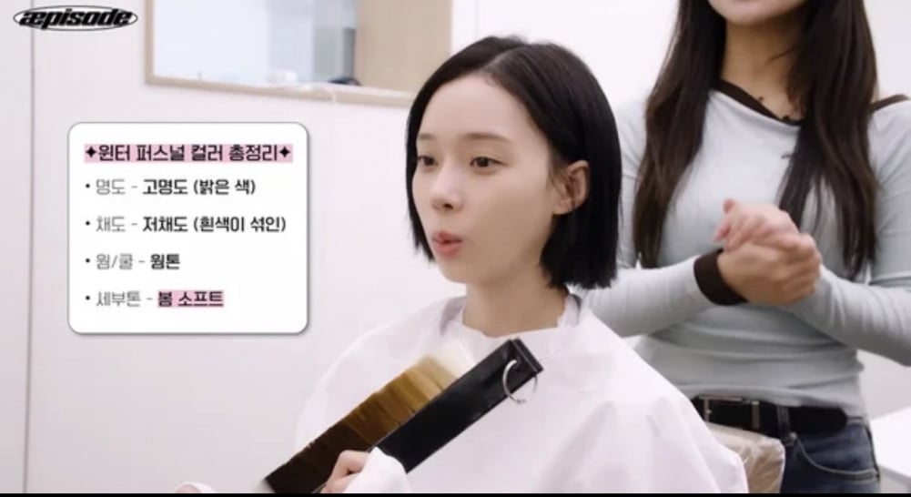 診斷結束後,Winter也猜測了成員們的個人色彩。她說:「Jimin歐尼(Karina)看起來像是夏季冷色調」,並補充道:「Aeri歐尼(Giselle)看起來也是冷色調,而Ningning絕對是冷色調。」