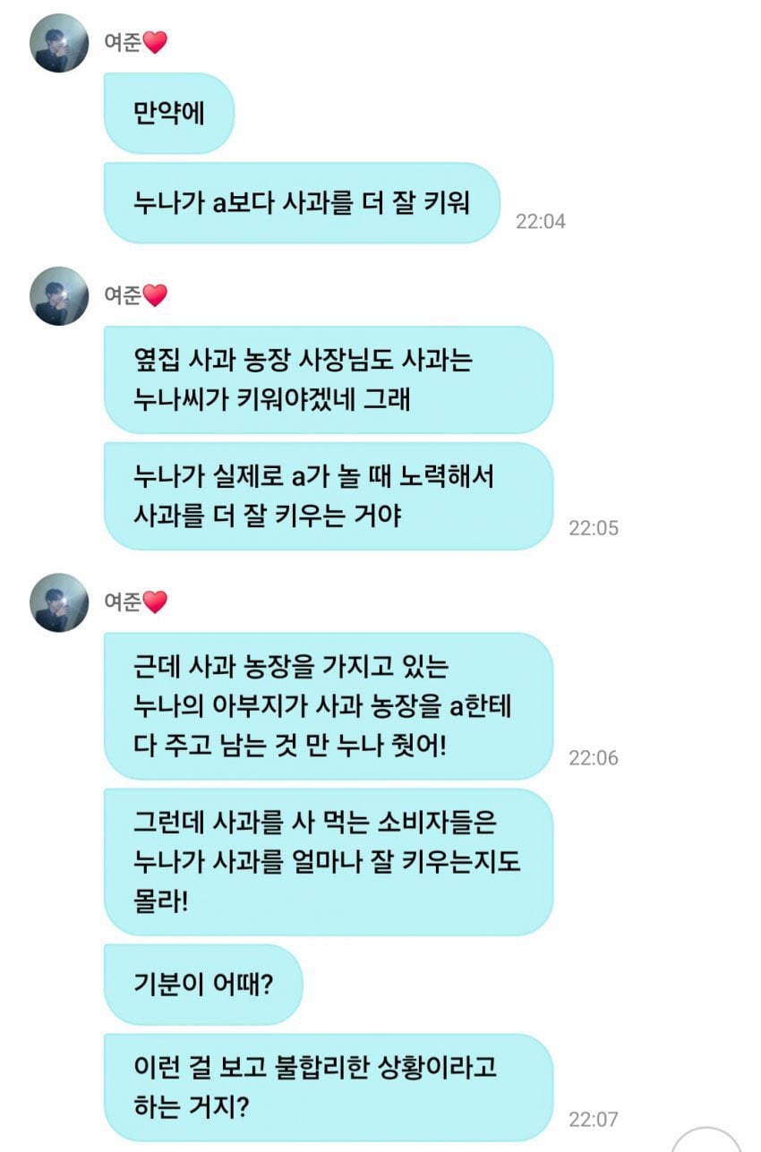 但突然間,你的父親,也就是蘋果園的主人,把整個果園都給了A,只把殘羹剩飯扔給你!