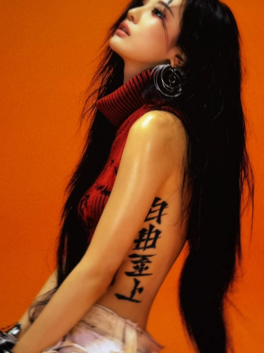 3月25日,寧藝卓分享了一組近期拍攝的寫真,展現大膽前衛的藝術概念。照片中,這位偶像以裸露背部的姿態入鏡,側腰位置清晰展露一行大型漢字紋身圖案。