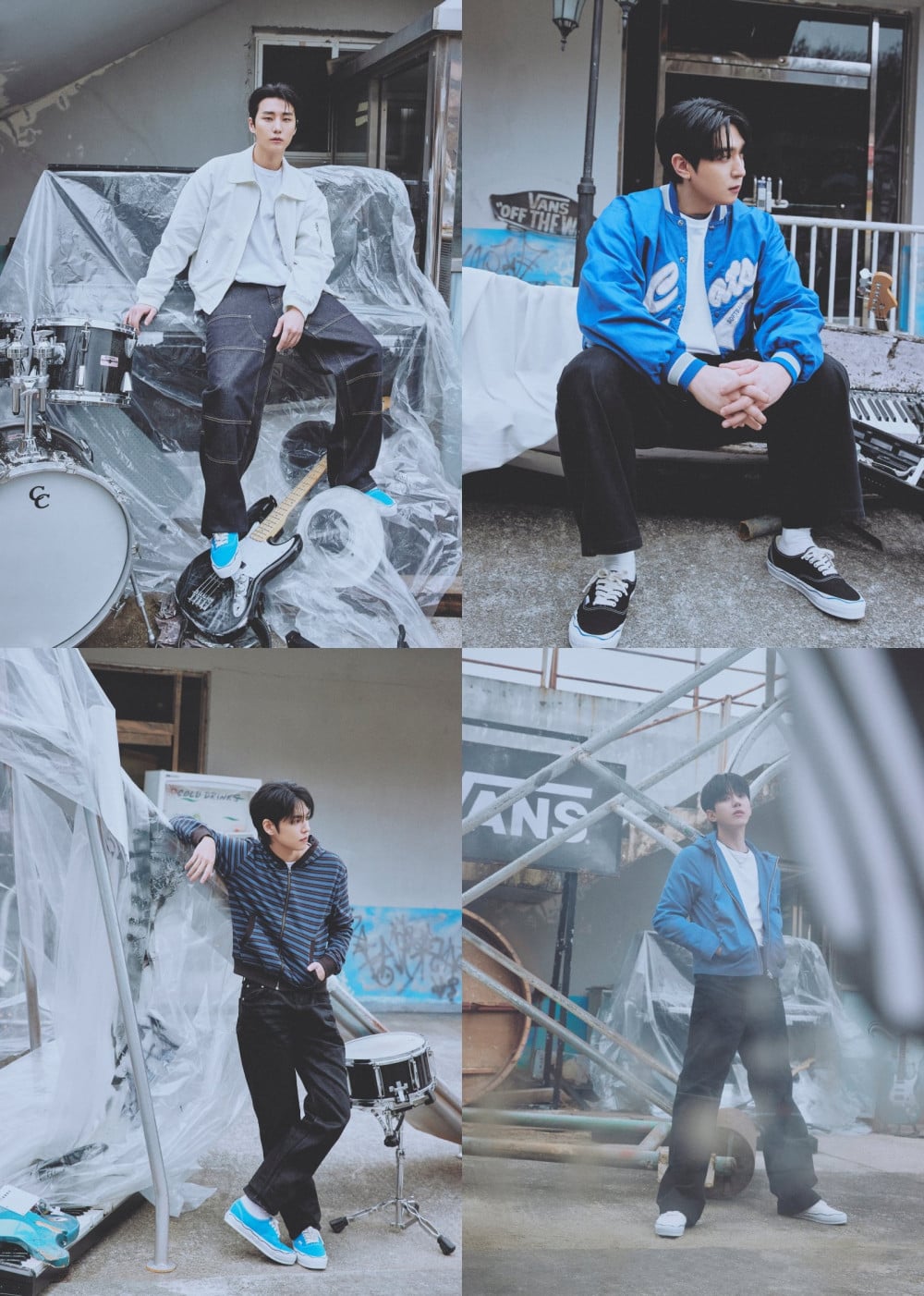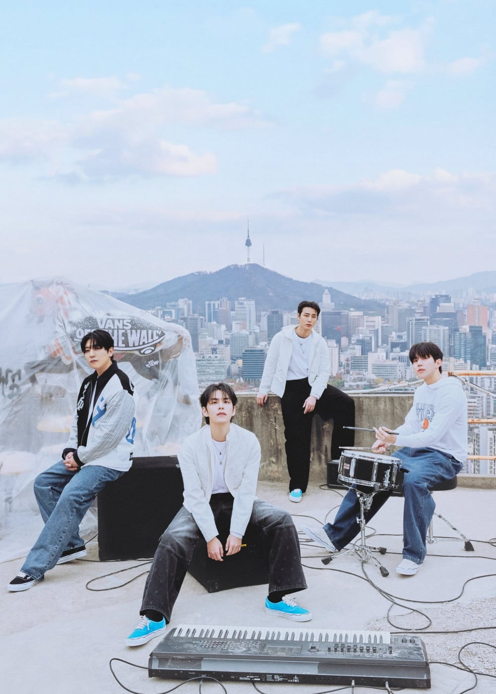 在首爾的背景下,DAY6 在畫報中展現了更為休閒卻不失精緻的氛圍。