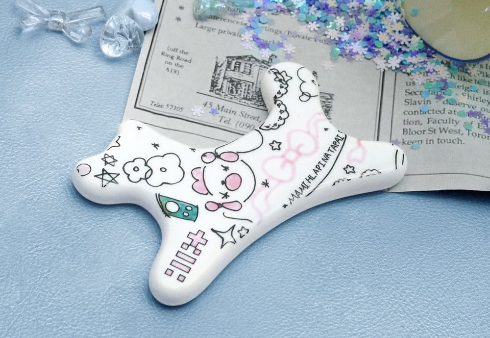 BELIFT LAB 解釋道:「我們希望創造一個能直觀傳達歌曲《GRWM (Get Ready With Me)》中『準備好』訊息的物件。刮痧板的形狀讓人聯想到自我護理程序,感覺是完美的契合。」 該設計還融入了狗的剪影,呼應了另一首歌曲 「paw, paw!」 的氛圍。