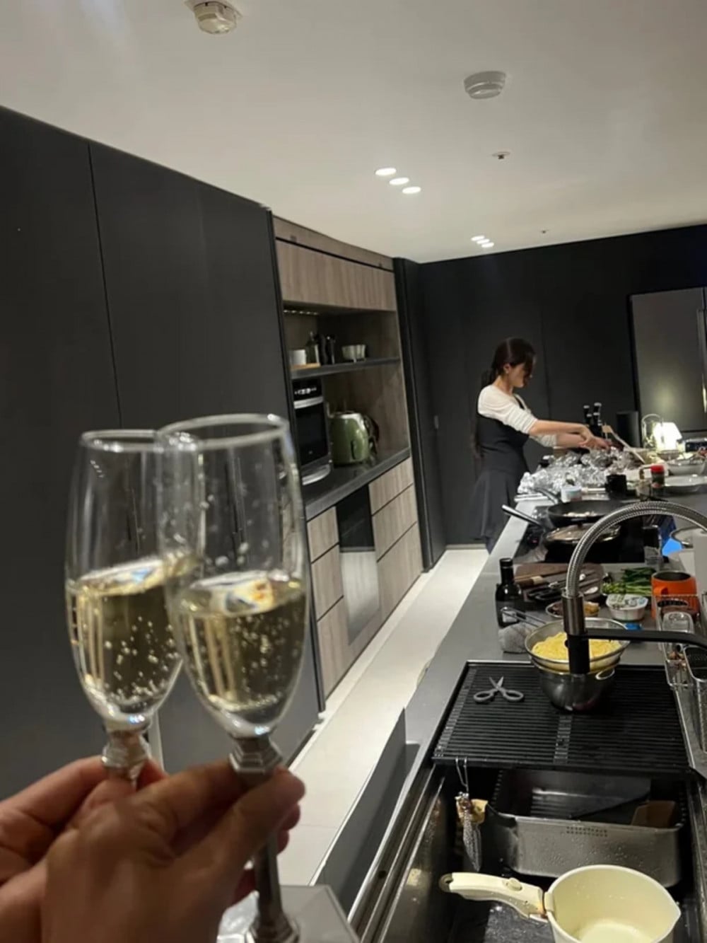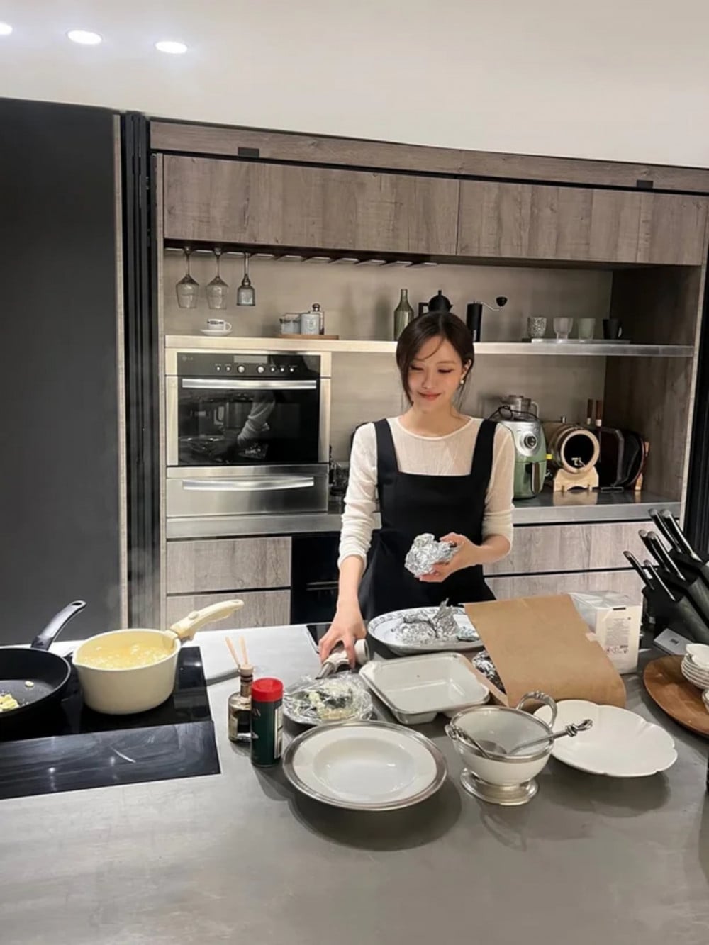 在公開的照片中,孝敏身穿黑色圍裙,在她那寬敞如餐廳般的廚房裡,忙著為賓客準備菜餚。她親力親為的態度和對細節的關注,立即吸引了粉絲的目光,不僅展現了她的待客之道,也顯示了她對烹飪的熱情。