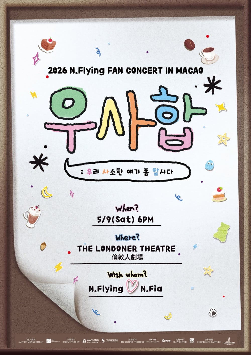 樂隊將於 4 月 11 及 12 日在台北台灣大學綜合體育館舉行《2026 N.Flying FAN CONCERT ‘Woo.Sa.Hap : Let's Talk About Our Little Things’》,隨後於 5 月 9 日在澳門倫敦人劇場舉行演出。